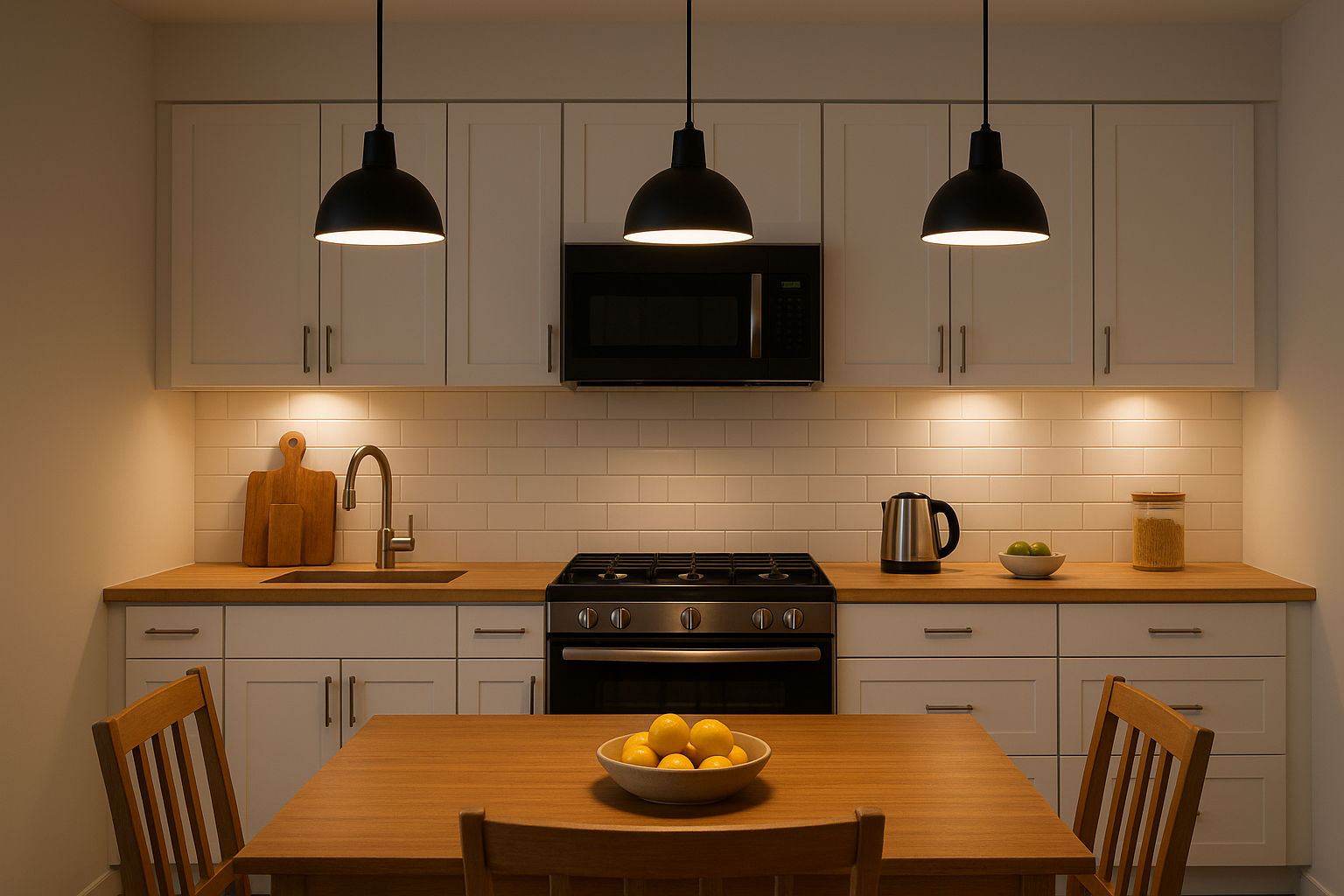 👉 Cozinha sem luz sobre a bancada, espelho do banheiro mal iluminado ou falta de foco na mesa de jantar são erros comuns.