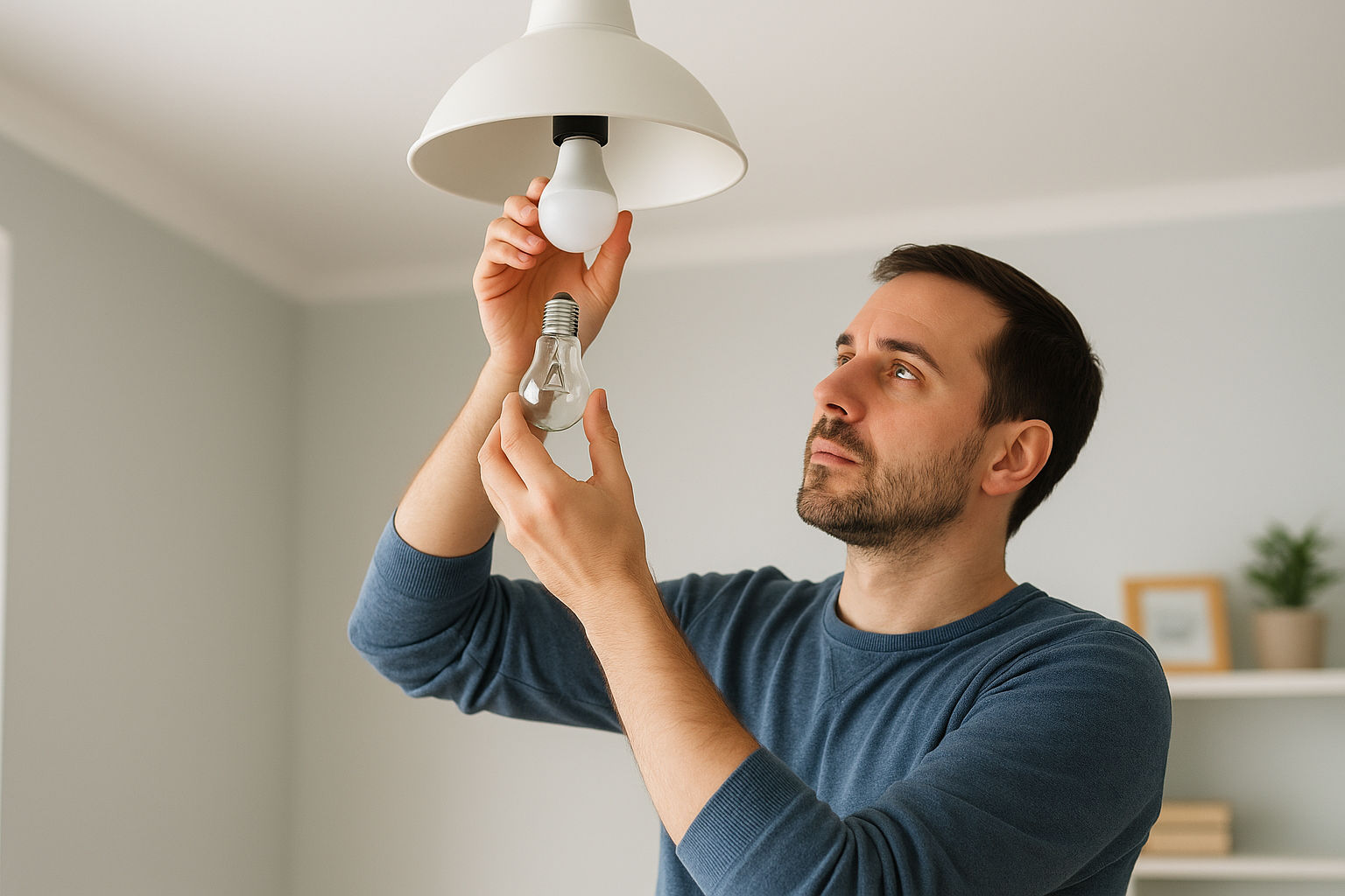 Troque tudo por LED, que consome até 80% menos energia e dura muito mais.