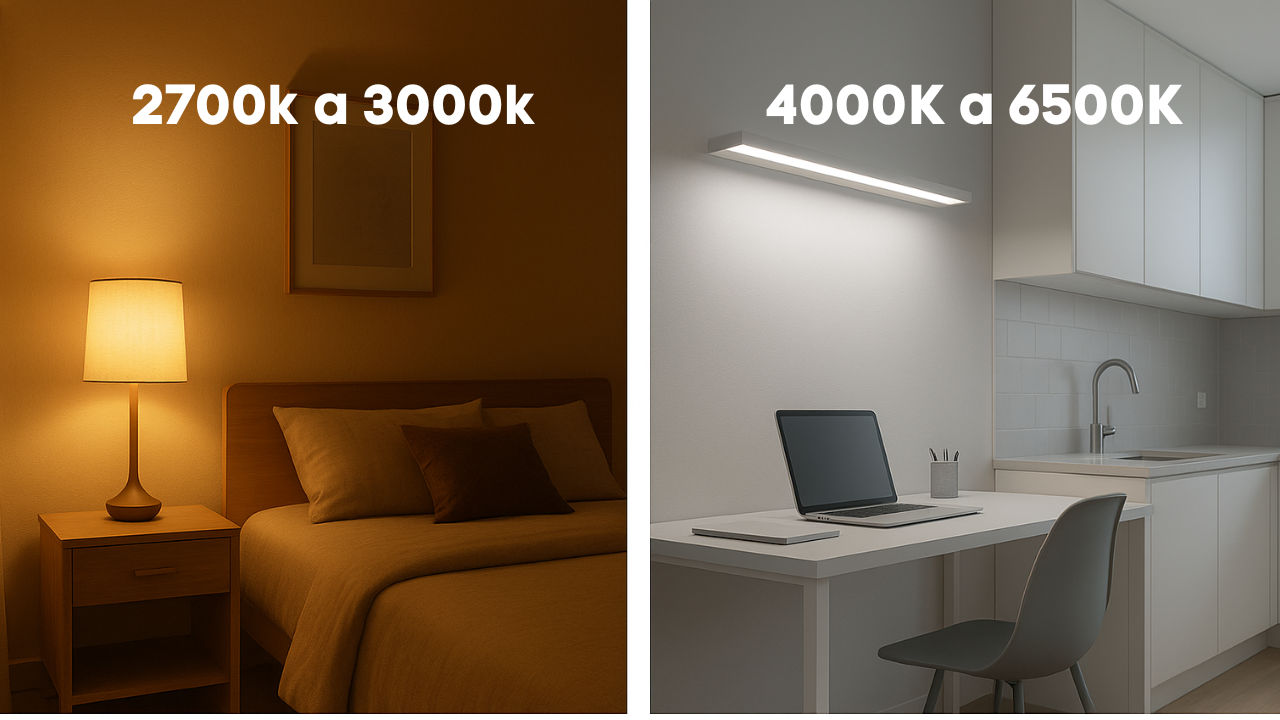 Ambientes de descanso: luz quente (2700K a 3000K)