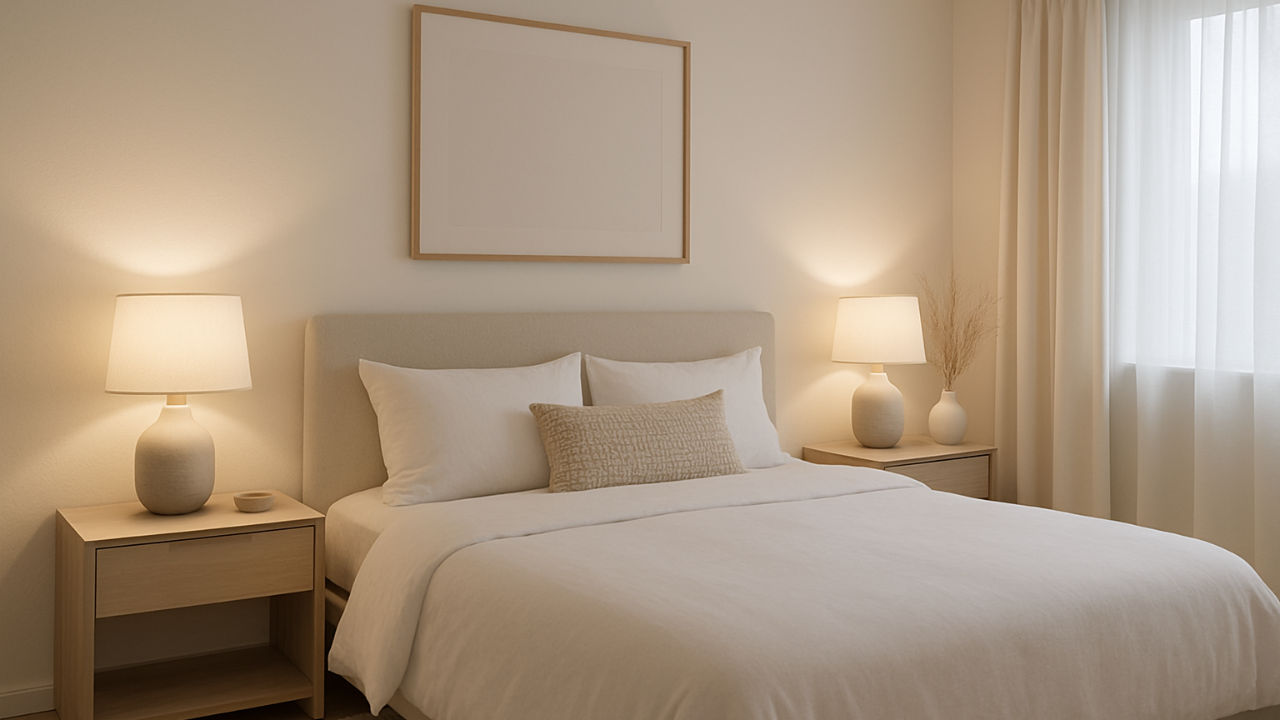 Aqui, a iluminação precisa ser suave e indireta. Aposte em luminárias com luz quente ou abajures com difusores. Spots no teto ou trilhos com luz direcional também ajudam a destacar elementos decorativos sem exagerar na intensidade.