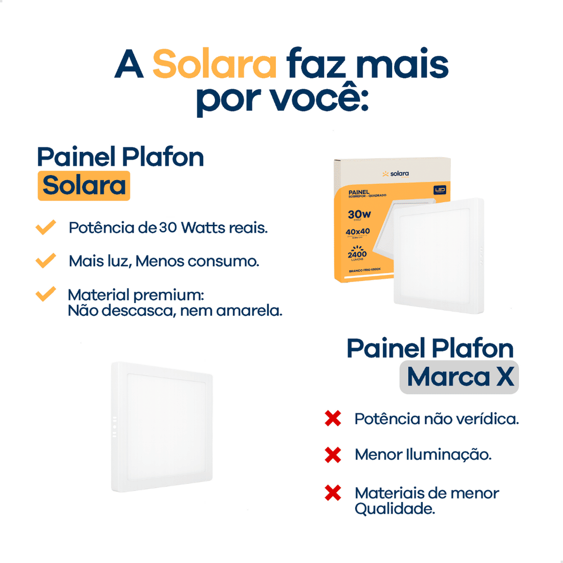 Para quem precisa de mais iluminação, oferecemos combo especial com 10 unidades do Painel Plafon 30W Quadrado Sobrepor 40X40 - Solara por apenas R$389,90. Qualidade e economia em um só pacote!