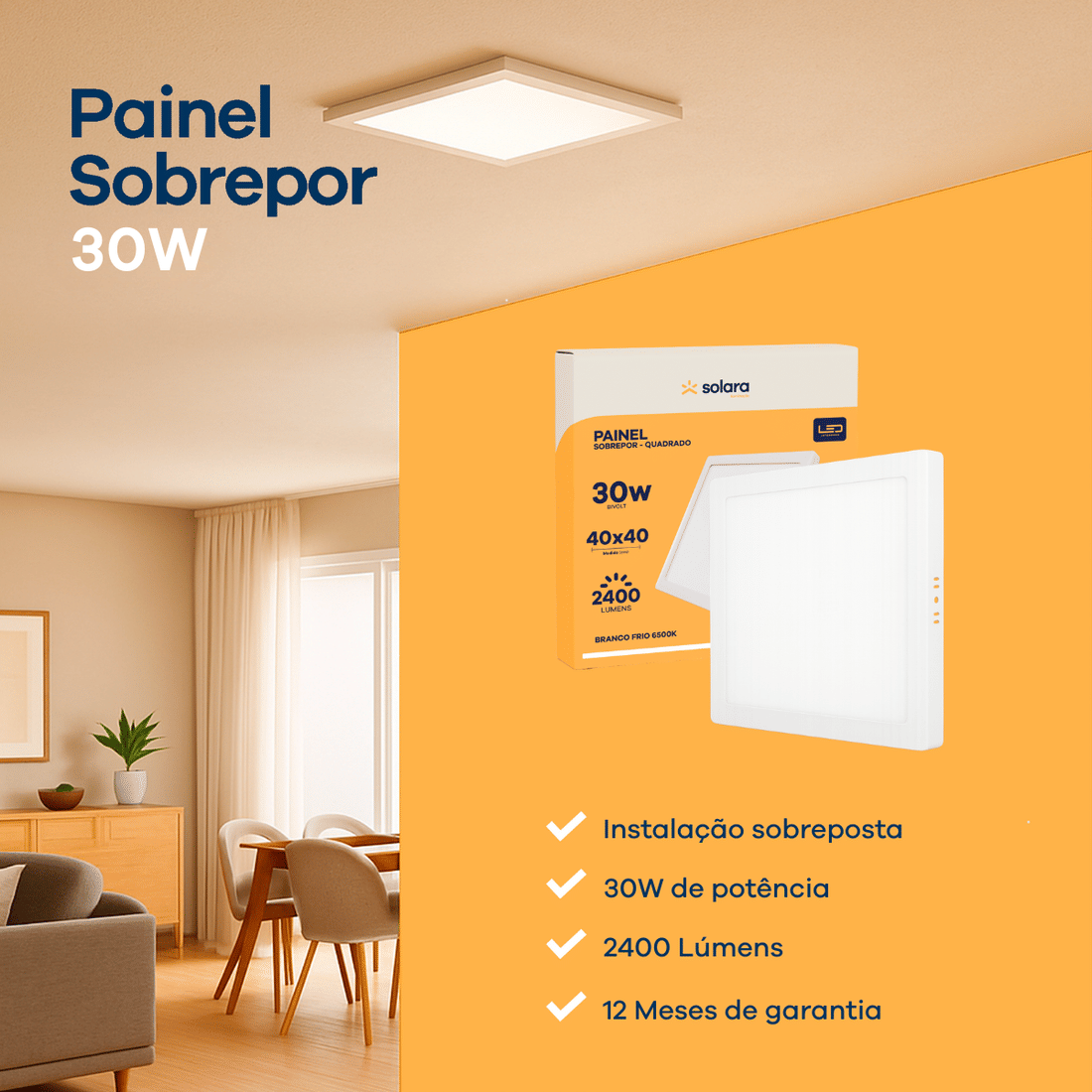 AdicionarPainel Plafon 30W Quadrado Sobrepor 40X40 - Solara