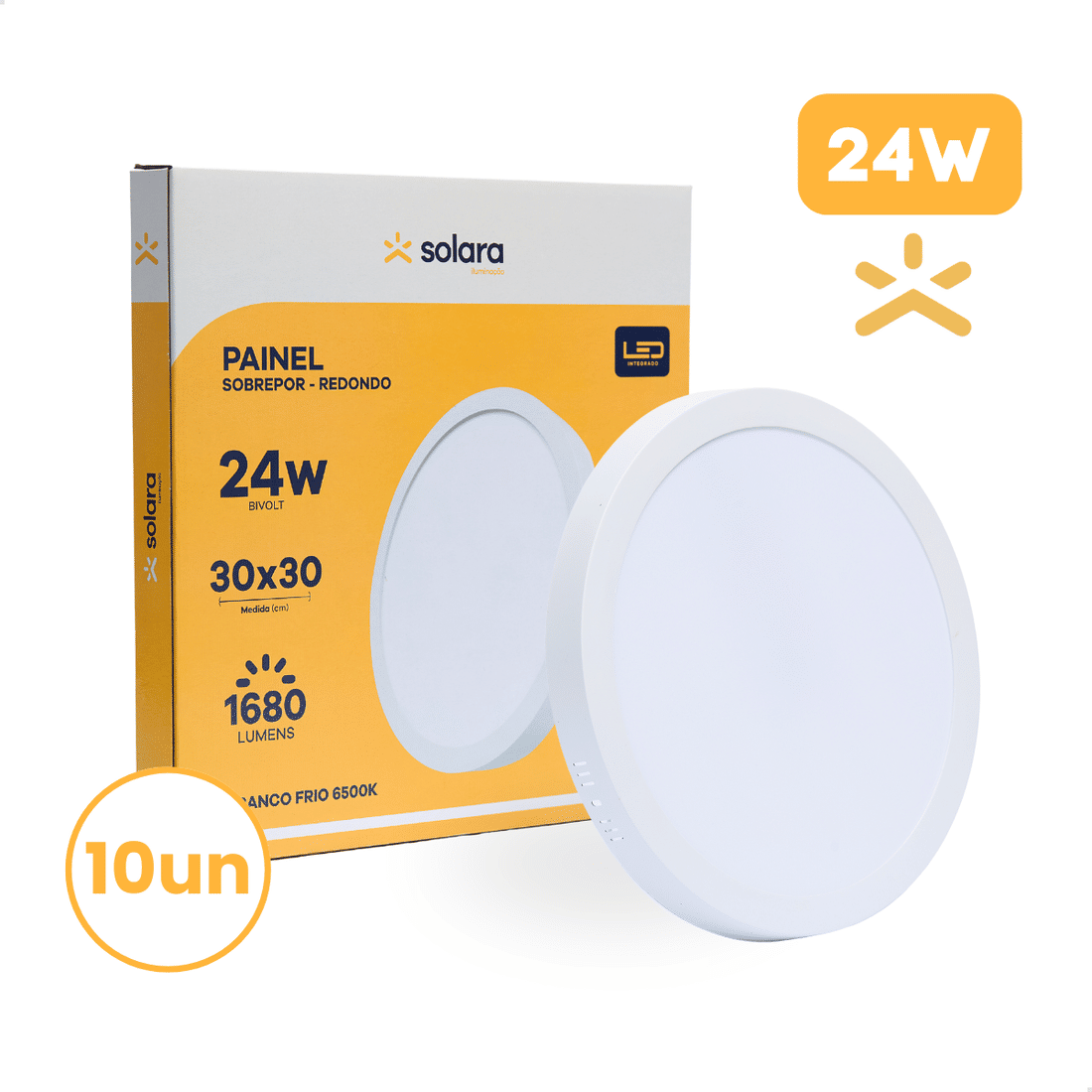 O Combo com 10 unidades do Painel Plafon LED 24W Redondo de Sobrepor 30 cm – Solara é a solução ideal para quem busca iluminação moderna, eficiente e de fácil instalação em ambientes residenciais e comerciais.